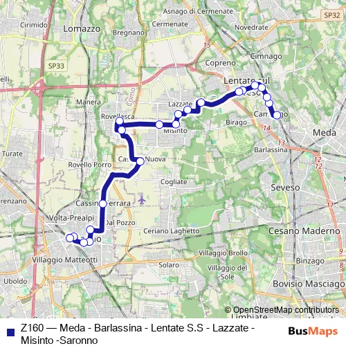 Bus Z160 - Meda - Barlassina - Lentate S.S - Lazzate - Misinto -Saronno: Full Schedule in Saronno