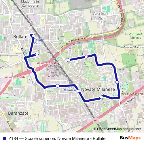 Bus Z184 - Scuole superiori: Novate Milanese - Bollate in Novate Milanese: Stops & Timetable