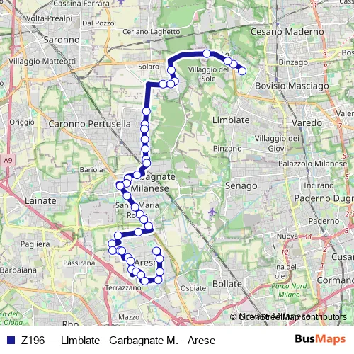 Click here to view the nearest Z196 - Limbiate - Garbagnate M. - Arese bus stop.