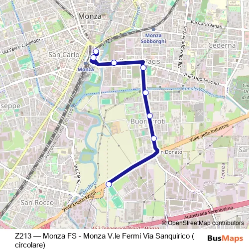 Bus Z213 - Monza FS - Monza V.le Fermi Via Sanquirico (circolare) in Monza: Stops & Timetable