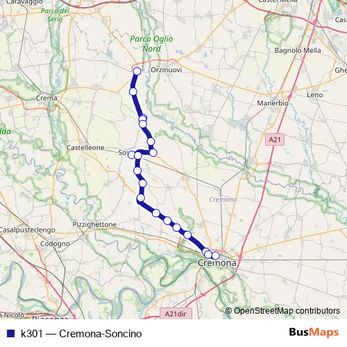 Bus k301 - Cremona-Soncino: Full Schedule in Cremona