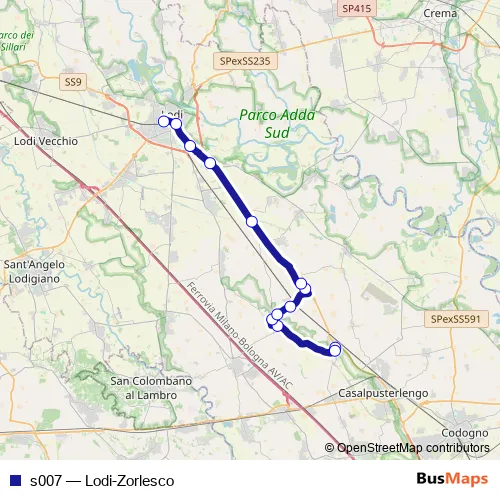Bus s007 - Lodi-Zorlesco in Lodi: Stops & Timetable