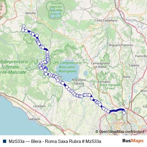 Click here to view the nearest Mz533a - Blera - Roma Saxa Rubra # Mz533a bus stop.