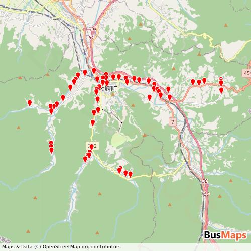 Transit map showing owanitown-sunekarabus routes and stops in Japan