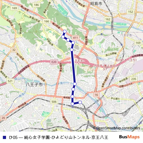 Bus ひ05 - 純心女子学園-ひよどり山トンネル-京王八王 Schedule in Hachioji