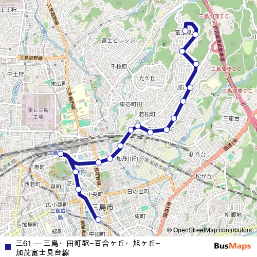 Click here to view the nearest 三61 - 三島・田町駅−百合ヶ丘・旭ヶ丘−加茂富士見台線 bus stop.