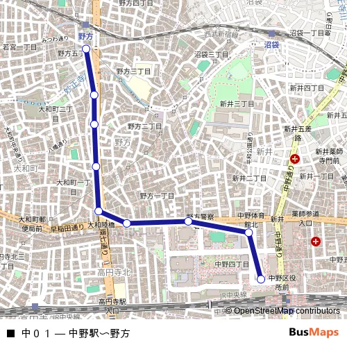 Click here to view the nearest 中01 - 中野駅〜野方 bus stop.