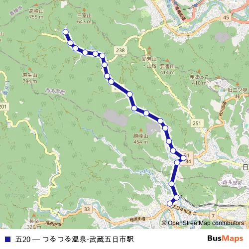 Bus 五20 - つるつる温泉-武蔵五日市駅 Schedule in Akiruno