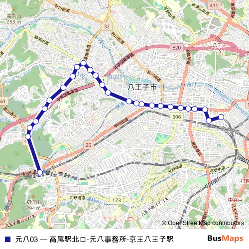 Bus 元八03 - 高尾駅北口-元八事務所-京王八王子駅: Full Schedule in Hachioji