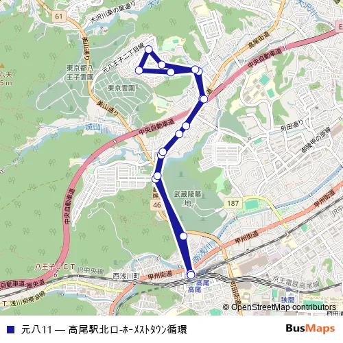 Click here to view the nearest 元八11 - 高尾駅北口-ホーメストタウン循環 bus stop.