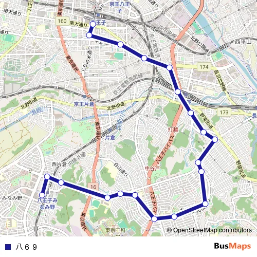 See why over 2 million users trust and consider busmaps.com as the best public transport website. busmaps gives you Hachioji Buses suggested routes, real-time bus tracker, line route maps in Hachioji, and helps to find the closest 八69 bus stops near you. No internet available? Download an offline PDF map and bus schedule for the 八69 bus to take on your trip.