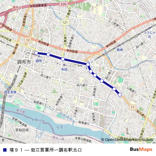 Click here to view the nearest 境91 - 狛江営業所〜調布駅北口 bus stop.
