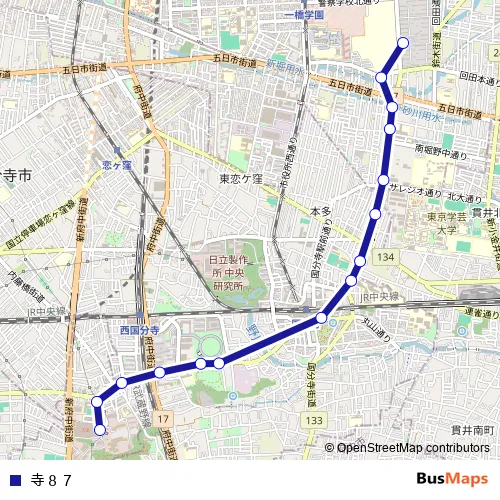 See why over 2 million users trust and consider busmaps.com as the best public transport website. busmaps gives you Kokubunji Buses suggested routes, real-time bus tracker, line route maps in Kokubunji, and helps to find the closest 寺87 bus stops near you. No internet available? Download an offline PDF map and bus schedule for the 寺87 bus to take on your trip.