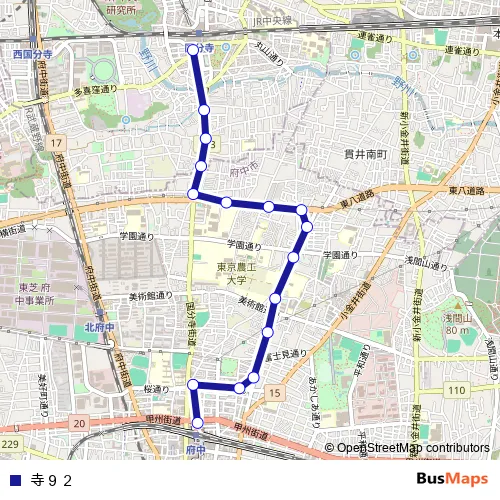 See why over 2 million users trust and consider busmaps.com as the best public transport website. busmaps gives you Fuchu Buses suggested routes, real-time bus tracker, line route maps in Fuchu, and helps to find the closest 寺92 bus stops near you. No internet available? Download an offline PDF map and bus schedule for the 寺92 bus to take on your trip.