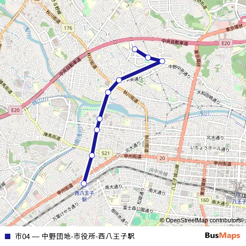 Bus 市04 - 中野団地-市役所-西八王子駅: Full Schedule in Hachioji