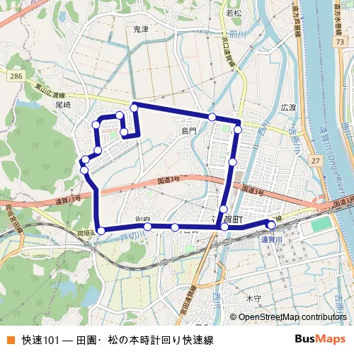 遠賀川駅(北口). 快速101 (田園・松の本時計回り快速線) is operational during 毎日.