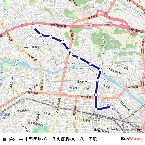 Bus 暁21 - 中野団地-八王子郵便局-京王八王子駅: Full Schedule in Hachioji