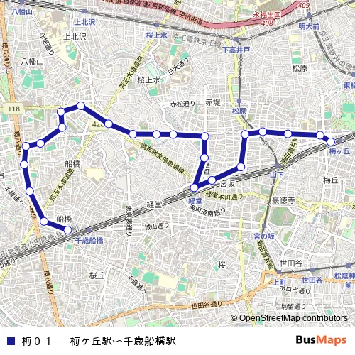 Click here to view the nearest 梅01 - 梅ヶ丘駅〜千歳船橋駅 bus stop.