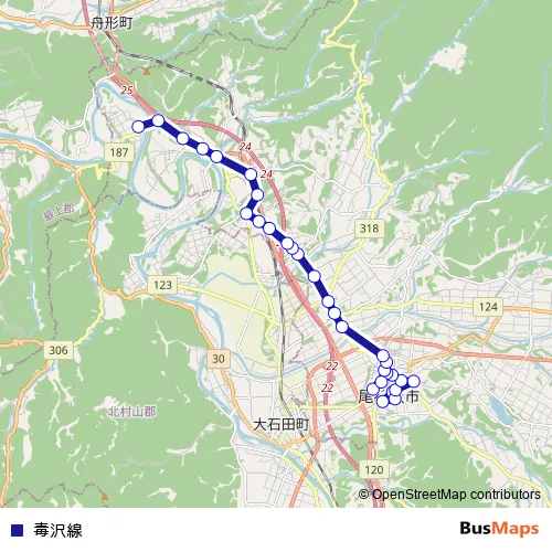 Additional information: 毒沢線 has 30 stops and the total trip duration