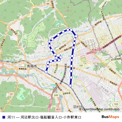 Bus 河11 - 河辺駅北口-塩船観音入口-小作駅東口 Schedule in Hamura