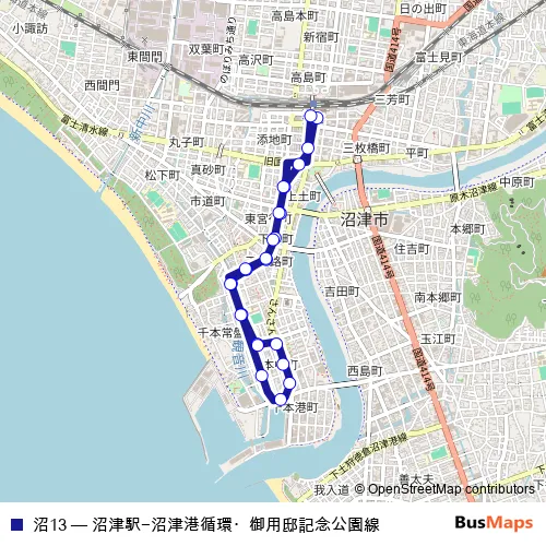 Click here to view the nearest 沼13 - 沼津駅−沼津港循環・御用邸記念公園線 bus stop.