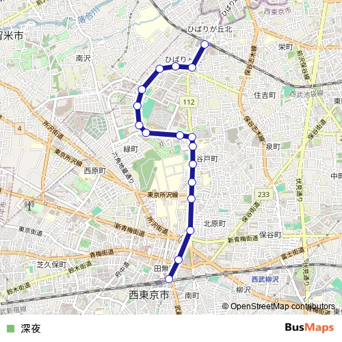 See why over 2 million users trust and consider busmaps.com as the best public transport website. busmaps gives you Nishitokyo Buses suggested routes, real-time bus tracker, line route maps in Nishitokyo, and helps to find the closest 深夜 bus stops near you. No internet available? Download an offline PDF map and bus schedule for the 深夜 bus to take on your trip.