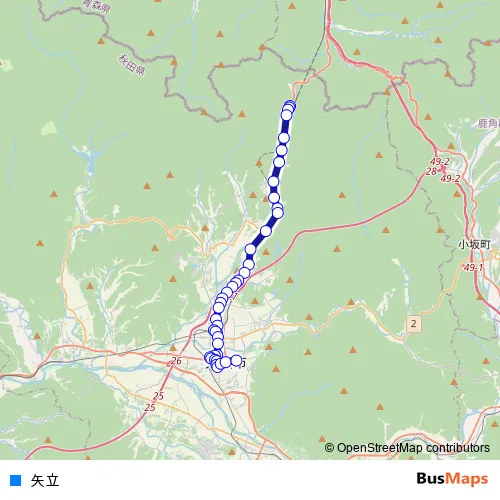 Additional information: 矢立 has 40 stops and the total trip duration for this route is approximately 46 minutes.
