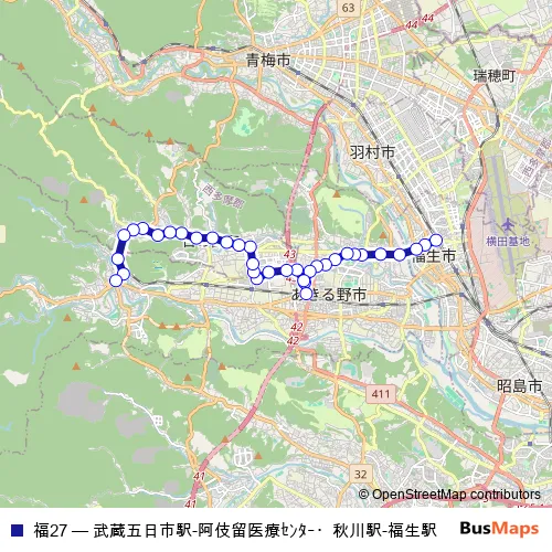 Click here to view the nearest 福27 - 武蔵五日市駅-阿伎留医療センター・秋川駅-福生駅 bus stop.