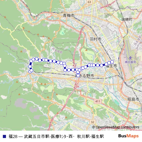 See why over 2 million users trust and consider busmaps.com as the best public transport website. busmaps gives you Akiruno Buses suggested routes, real-time bus tracker, line route maps in Akiruno, and helps to find the closest 福28 bus stops near you. No internet available? Download an offline PDF map and bus schedule for the 福28 bus to take on your trip.