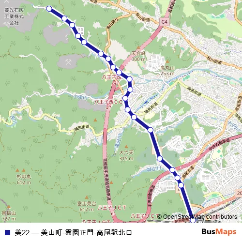 Bus 美22 - 美山町-霊園正門-高尾駅北口 in Akiruno: Stops & Timetable