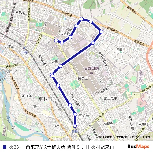 Bus 羽33 - 西東京バス青梅支所-新町9丁目-羽村駅東口 Schedule in Hamura