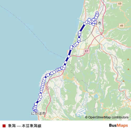 Click here to view the nearest 象潟 - 本荘象潟線 bus stop.