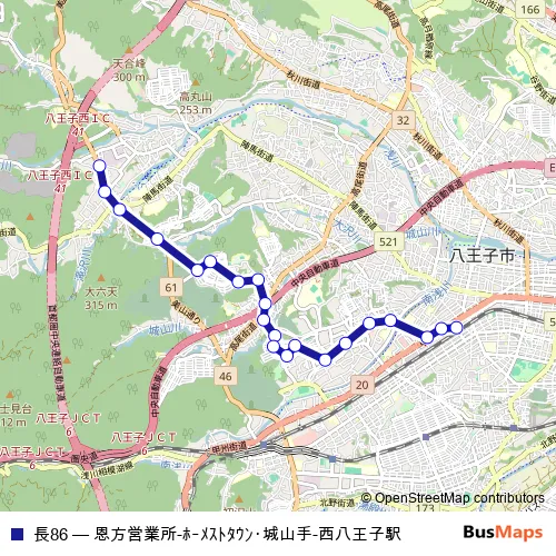 Bus 長86 - 恩方営業所-ホーメストタウン・城山手-西八王子駅 in Hachioji: Stops & Timetable
