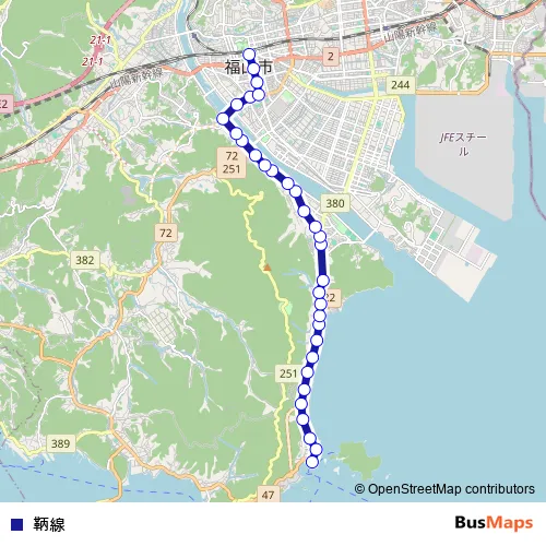 See why over 2 million users trust and consider busmaps.com as the best public transport website. busmaps gives you Fukuyama Buses suggested routes, real-time bus tracker, line route maps in Fukuyama, and helps to find the closest 鞆線 bus stops near you. No internet available? Download an offline PDF map and bus schedule for the 鞆線 bus to take on your trip.