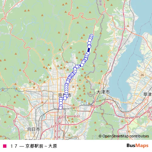 See why over 2 million users trust and consider busmaps.com as the best public transport website. busmaps gives you Kyoto Buses suggested routes, real-time bus tracker, line route maps in Kyoto, and helps to find the closest 17 bus stops near you. No internet available? Download an offline PDF map and bus schedule for the 17 bus to take on your trip.