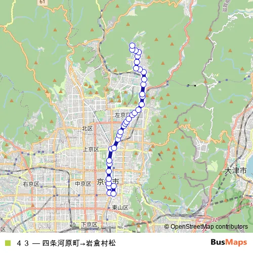 Click here to view the nearest 43 - 四条河原町→岩倉村松 bus stop.