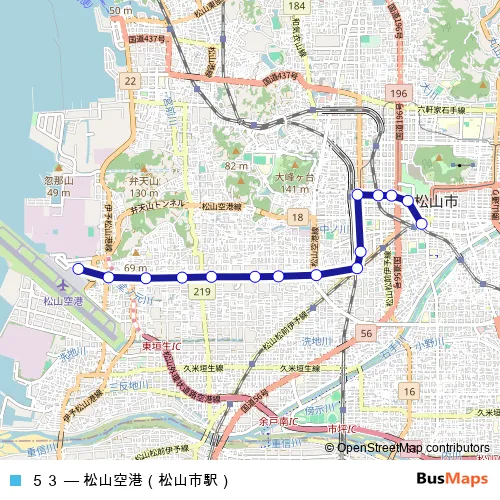 Click here to view the nearest 53 - 松山空港(松山市駅) bus stop.