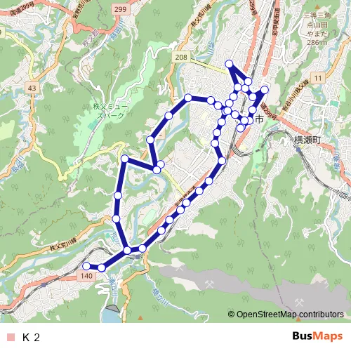 See why over 2 million users trust and consider busmaps.com as the best public transport website. busmaps gives you Chichibu Buses suggested routes, real-time bus tracker, line route maps in Chichibu, and helps to find the closest K2 bus stops near you. No internet available? Download an offline PDF map and bus schedule for the K2 bus to take on your trip.