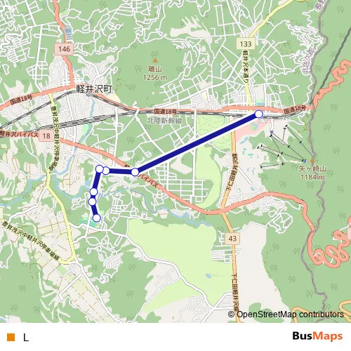 The first stop of the L bus route is 軽井沢駅 and the last stop is 風越公園. L is operational during 毎日.