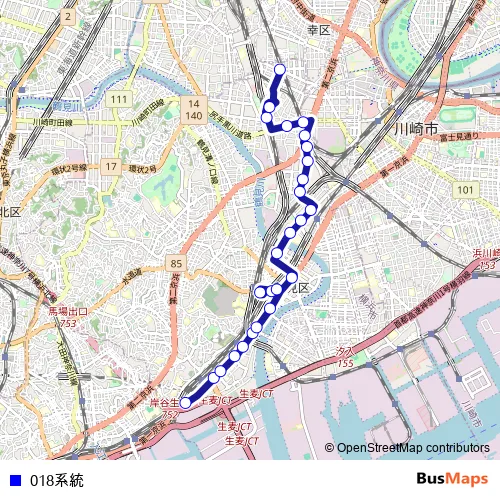 See why over 2 million users trust and consider busmaps.com as the best public transport website. busmaps gives you Kawasaki Buses suggested routes, real-time bus tracker, line route maps in Kawasaki, and helps to find the closest 018系統 bus stops near you. No internet available? Download an offline PDF map and bus schedule for the 018系統 bus to take on your trip.