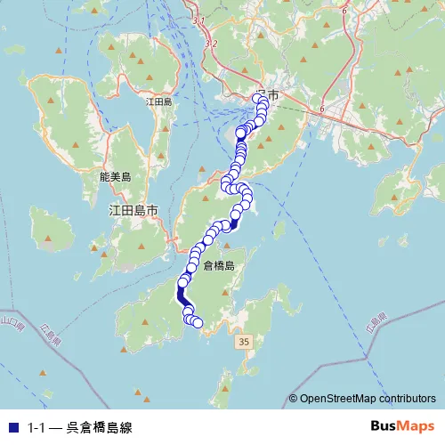 Click here to view the nearest 1-1 - 呉倉橋島線 bus stop.