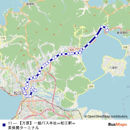 Bus 11 - 【万原】一畑バス本社⇔松江駅⇔美保関ターミナル: Full Schedule in Matsue