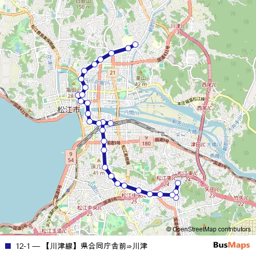Bus 12-1 - 【川津線】県合同庁舎前⇒川津 Schedule in Matsue