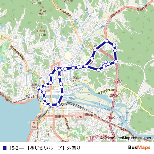Bus 15-2 - 【あじさいループ】外回り: Full Schedule in Matsue