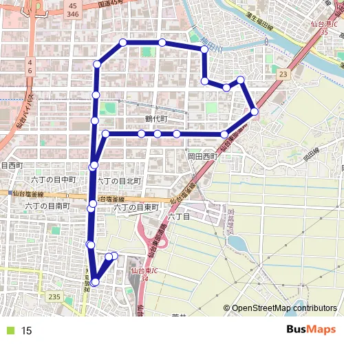 See why over 2 million users trust and consider busmaps.com as the best public transport website. busmaps gives you Sendai Buses suggested routes, real-time bus tracker, line route maps in Sendai, and helps to find the closest 15 bus stops near you. No internet available? Download an offline PDF map and bus schedule for the 15 bus to take on your trip.