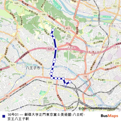 Bus 16号01 - 創価大学正門東京富士美術館‐八日町-京王八王子駅 Schedule in Hachioji