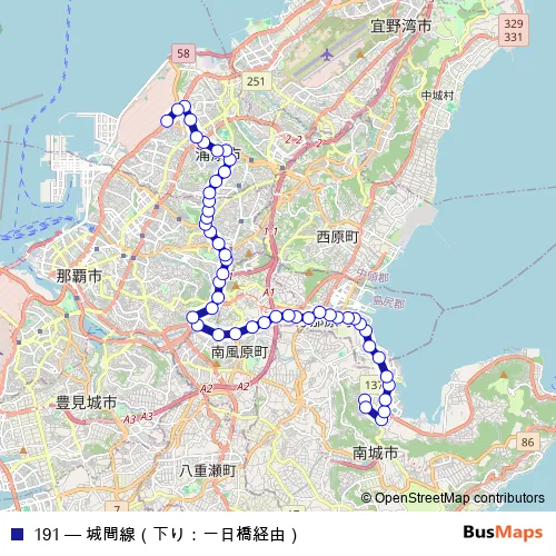 See why over 2 million users trust and consider busmaps.com as the best public transport website. busmaps gives you Naha Buses suggested routes, real-time bus tracker, line route maps in Naha, and helps to find the closest 191 bus stops near you. No internet available? Download an offline PDF map and bus schedule for the 191 bus to take on your trip.