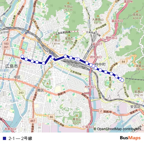 See why over 2 million users trust and consider busmaps.com as the best public transport website. busmaps gives you Hiroshima Buses suggested routes, real-time bus tracker, line route maps in Hiroshima, and helps to find the closest 2-1 bus stops near you. No internet available? Download an offline PDF map and bus schedule for the 2-1 bus to take on your trip.