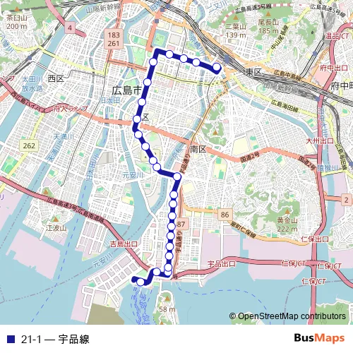 Bus 21-1 - 宇品線 in Hiroshima: Stops & Timetable