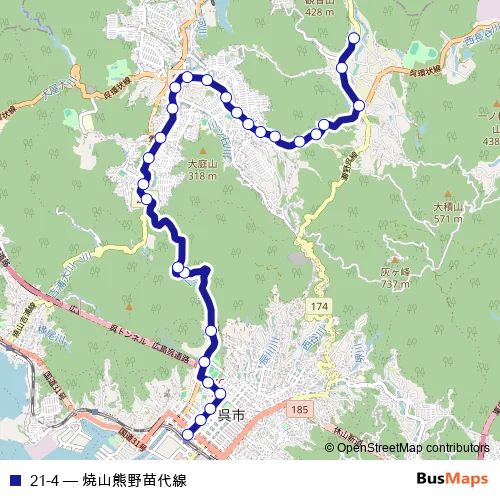 Bus 21-4 - 焼山熊野苗代線 in Kure: Stops & Timetable